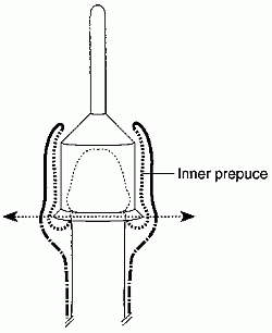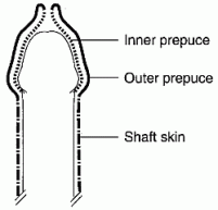 the foreskin or prepuce. The foreskin consists of two layers, the outer