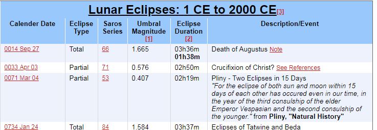 lunar eclipse that lasted about 3 hours on April 3, A.D. 33 (source: