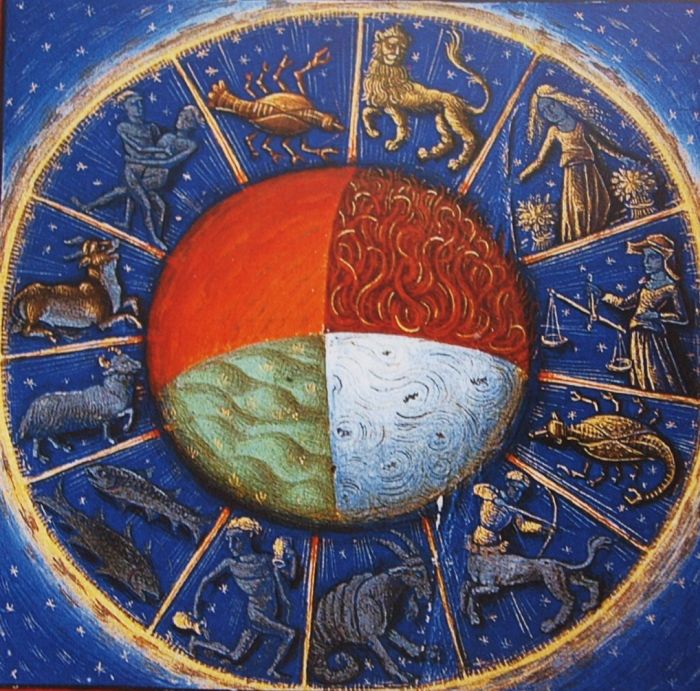 Air, Water, Fire, and Earth (their glyphs below, in that order).