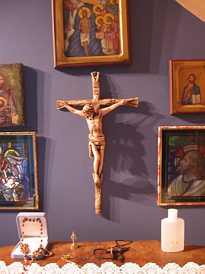 Before the crucifix is whatever devotional book I am currently using.