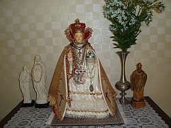 He has figures of Our Lady and the Infant of Prague, among others.