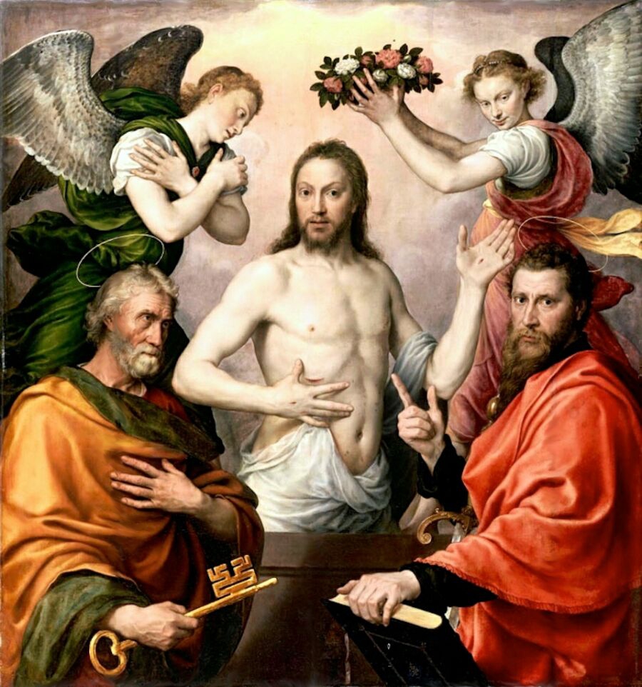 risen Christ in the midst of the Apostles on Easter evening, recounts