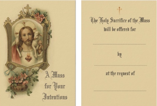 Mass intention card, outside and inside