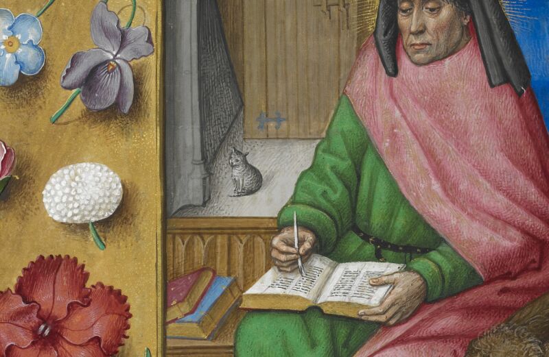 medieval cat -- who left his inky pawprints all over it? Below, click