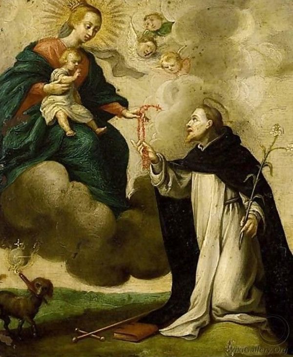 In 1203, while accompanying a Bishop on a diplomatic mission, he went to Toulouse, France and saw how the the place was in spiritual ruins because of the Albigensian heresy (Catharism) that held that matter is evil, that the Second Person of the Trinity did not become true man, but was only spirit, that committing suicide to escape the body is a good thing, etc. These problems went unchallenged by the local religious who'd fallen into worldliness and decadence. So Dominic decided to found a religious order for the specific purpose of preaching, and fighting such heresies. He first built a monastery for women -- the Monastery of Our Lady of Prouille -- which you can visit today in Fanjeaux, Aude, France. It was there that St. Dominic had a vision of Our Lady in which she instructed him to formalize and spread the praying of the Rosary, which he, of course, did.