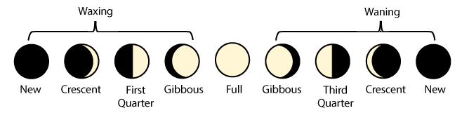 The Moon takes twenty-nine and a half days to complete its cycle from New Moon to New Moon, and as you get into stargazing, you'll find that the Moon's phases have a definite effect on how visible the stars are. The Sun's light crosses the Moon's face from right to left